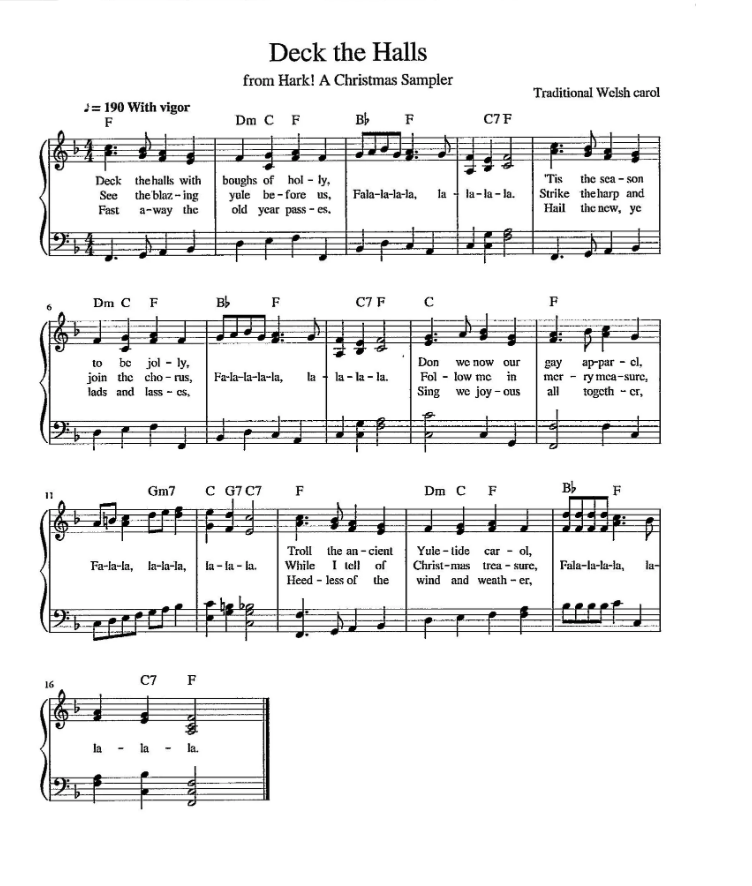 Here are links to sheet music for our yearly caroling event. Wassail Song and We Wish You a Merry Christmas are the opening and closing numbers